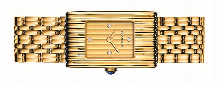 Хронометр в желтом золоте с 4 бриллиантовыми индексами и с «невидимой застежкой».