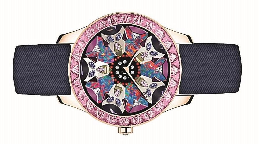 Разглядывая вышивку через калейдоскоп, дизайнеры создали циферблат часов, существующих в одном экземпляре.