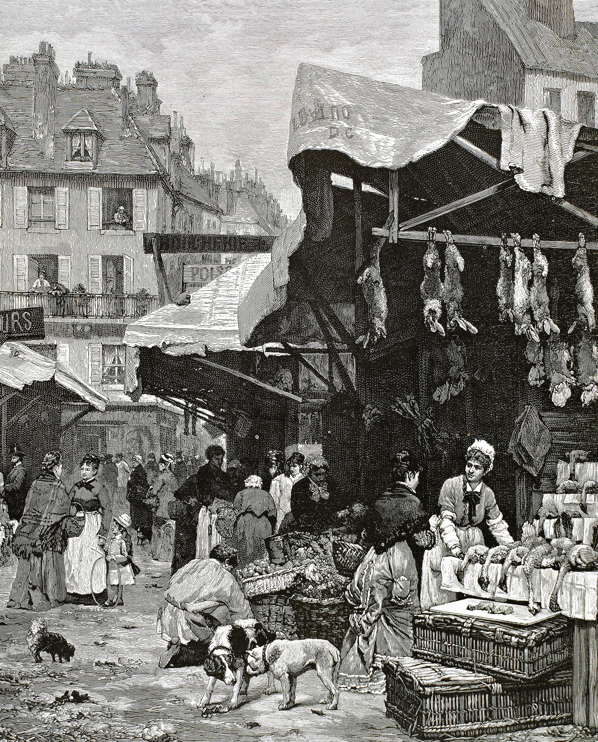 В 1873 году Эмиль Золя восторженно писал: «Если вы давно не были в Париже, вы, верно, не знаете и нового Центрального рынка? Уж лет пять как его выстроили... Видите павильон, что подле нас? Это павильон фруктов и цветов; немного подальше – рыба, птица, а позади – овощной ряд, масло, сыр... С этой стороны – шесть павильонов; затем по другую сторону, напротив, еще четыре: мясо, требушина, птичий ряд... Вот какая махина! Говорят, будто построят еще два павильона – снесут дома вокруг Хлебного рынка».