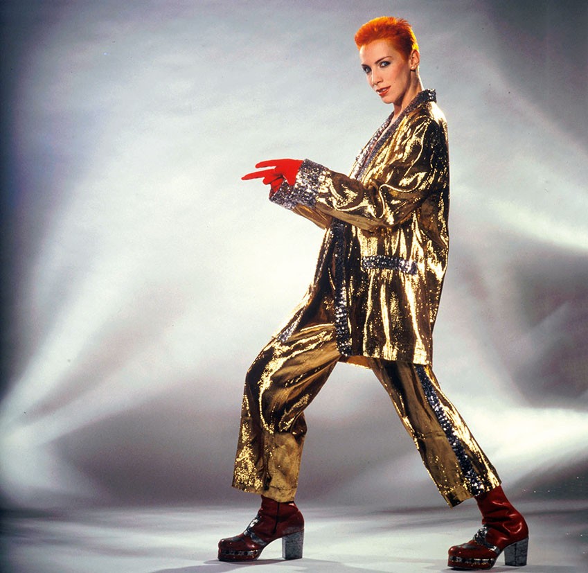 Пик популярности Энни Леннокс пришелся на середину 80-х, когда выстрелил ее общий проект с Дэйвом Стюартом — дуэт Eurythmics. Внимание привлек образ Энни — в первом хите группы Love is a Stranger она перевоплощается из светской львицы в странное бесполое существо в кожаном комбинезоне. Окончательно андрогинный образ Энни закрепился после клипа на песню Sweet Dreams (Are Made of This) (1983). Короткие рыжие волосы (за которые критики дали ей прозвище Морковка), яркий макияж, мужской костюм с галстуком и тростью — Леннокс воплотила в себе все характерные черты глэм-рока второй волны. Прическу она позаимствовала у Дэвида Боуи в образе Зигги Стардаста, мужские костюмы — у Грейс Джонс, вызывающий макияж — у Клауса Номи и Марка Алмонда. Энни превратилась в человека-конструктора: не изобретая ничего нового, она научилась виртуозно сочетать в своих