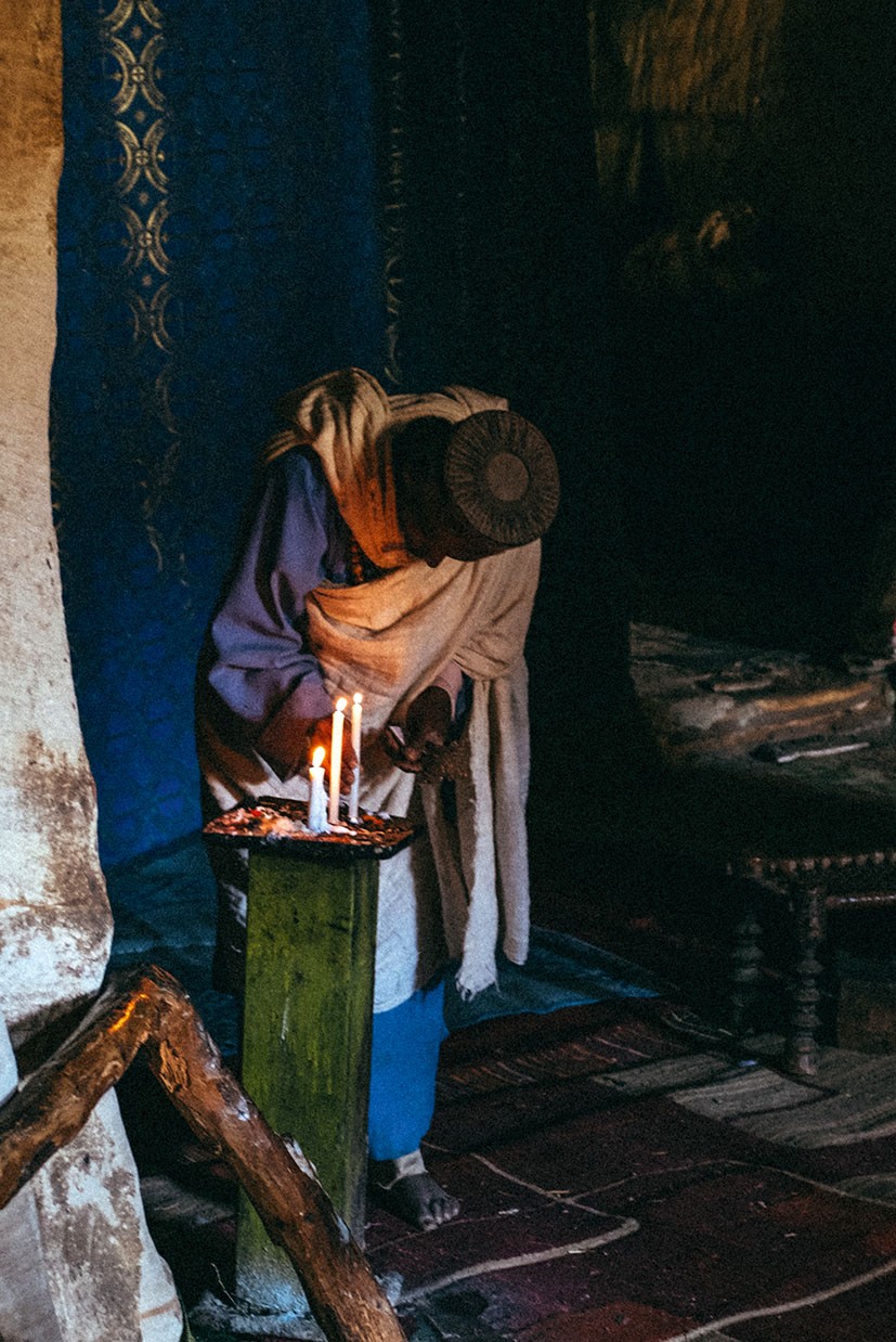 В регионе Тыграй находится та бесконечная гористая пустыня, что видна из окна самолета Москва — Аддис-Абеба. Большинство исторически значимых храмов удалены от главной дороги на несколько километров вглубь пустыни, покрытой огромными кактусами, прозванными в народе «рай в пустыне» за их красную цветочную макушку. Ради каждого из этих храмов стоит съехать с гладкой дороги (качество которой сравнимо с любой местной дорогой в Европе) и потрястись несколько минут на неизъезженной каменной тропинке, ведущей к церкви. В каждой из них нас встречает главный священник, который с нескрываемым удовольствием показывает все тайные сокровища храма: расписные стены с библейскими сюжетами, сохранившие яркие цвета спустя огромное количество лет, священные книги, написанные на козьей коже, — и предлагает прочесть молитву — не важно, к какой религии вы себя относите. Однако некоторые храмы расположены так, словно кто-то захотел проверить, насколько крепка ваша вера — главным образом в самих себя. К ним нужно карабкаться по горе на несколько сотен метров вверх. Вначале кажется, что это несложно, но чем выше забираешься, тем больше начинаешь сомневаться в собственных возможностях. Где-то наклон горы настолько крутой, что местные