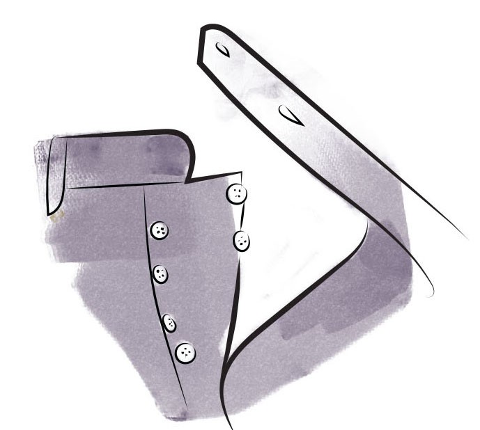 Классический вариант застежки, по-прежнему распространенный в bespoke. Обычно снабжен дополнительной пуговицей или петлей бортодержателем. Ручная обметка петель не рекомендуется во избежание растягивания.