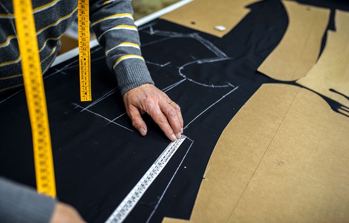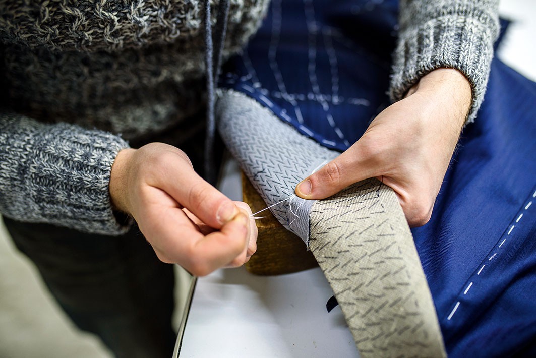 Любимые ткани Чезаре — плотные английские Holland & Sherry и Fox Brothers и деликатный кашемир Loro Piana. MTM здесь нет, 10 мастеров-портных шьют до 60 beµoke-костюмов в месяц.