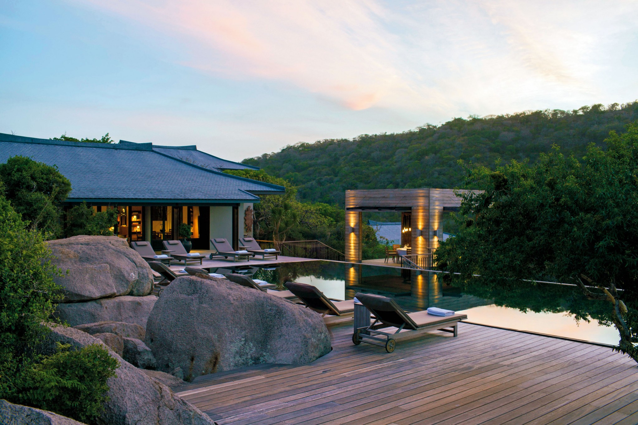 Отели Aman обычно открываются в местах, куда другим вход заказан. Курорт Amanoi — не исключение. Однако, расположенный на территории национального парка Ный Чуа, он отличается не просто природной красотой, но уникальным микроклиматом. Выйдя в аэропорту Камрань после полуторачасового перелета Vietnam Airlines из Ханоя в Нячанг, вы почувствуете знакомую тропическую влажность. Но благодаря горам вокруг в Amanoi климат практически средиземноморский, и даже когда во всей стране лютуют муссоны, тут сухо и безоблачно. Вместо больших деревьев здесь очень густой буш и растут кактусы, которые обычно не жалуют тропики. Количество видов птиц не поддается подсчету, встречаются бирюзовые ящерицы, хамелеоны и мелкие змейки. Архитектор Amanoi Жан-Мишель Гати — мастер визуальных эффектов, которых он добивается простыми, но беспроигрышными средствами. Прибытие в Amanoi обставлено почти театрально: вас подвозят к подножью павильона, откуда взбегает высоко вверх каменная лестница под каскадом пагод. Светлый тик, строгая геометрия, игра света и тени, минимум декора и точные вкрапления антиквариата — здесь все в идеальной гармонии.