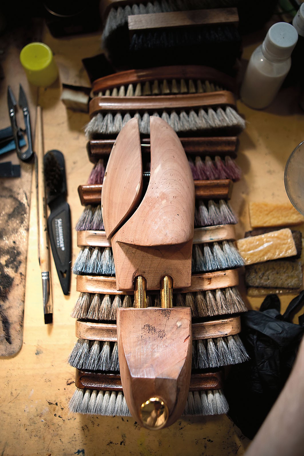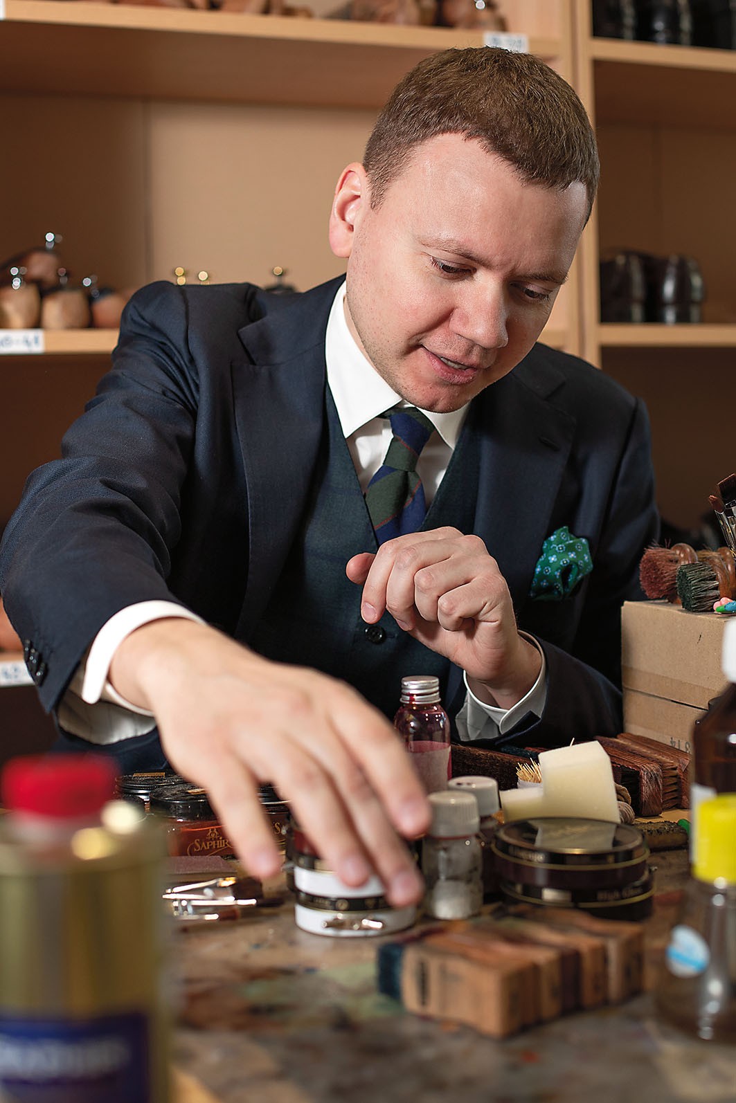 Первые заказы пришли только через полгода после регистрации марки, а первую клиентку Shoesing обслуживает до сих пор. Три года работы после основания были самыми тяжелыми: заказы размещались на подряде, хотя финишингом Еремеев занимался лично. По его стандартам и учили собственную команду мастеров. Сегодня первая ученица, начинавшая вместе с Алексеем, — ведущий мастер, а всего в компании 12 человек. Недавно Shoesing переехали в новый просторный цех, где ручной труд совмещен с компьютерными технологиями: каждая пара маркируется кодом, по которому можно отследить путь от приемки до сдачи клиенту.