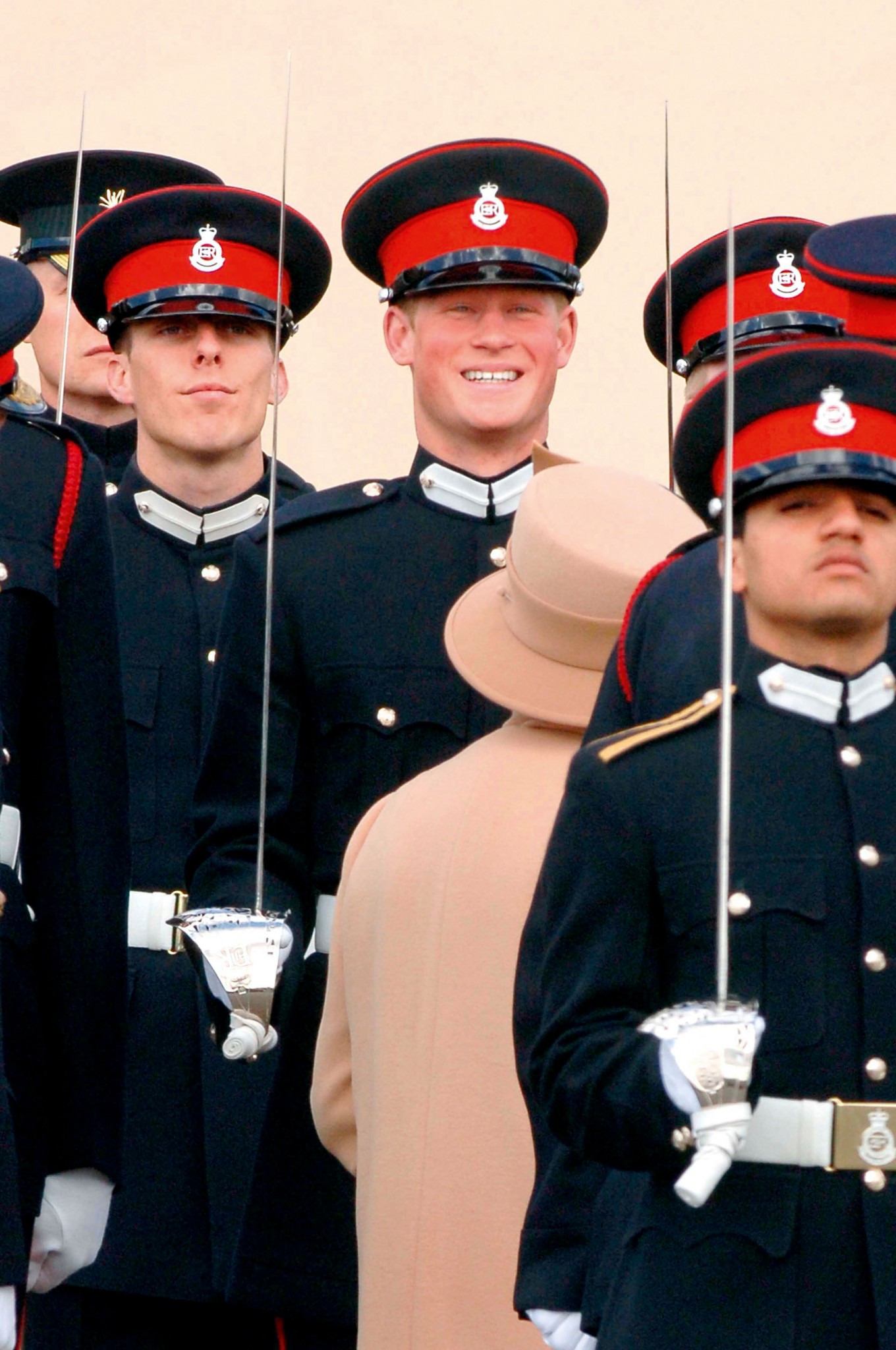 Королева обращается к принцу Гарри во время монаршего смотра выпускников военного училища Сандхёрст, 2006