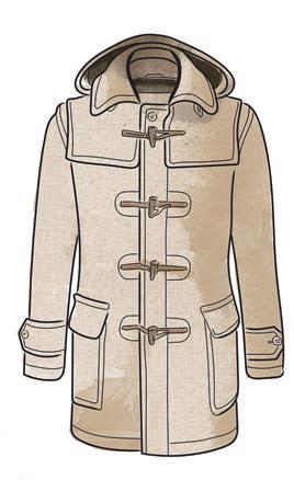 Пальто с крупными накладными карманами, капюшоном и застежками из моржового клыка. Оно возникло в британском военно-морском флоте в конце XIX века. Ткань для настоящего дафлкота — тяжелый мелтон. Сперва из толстой пряжи ткут рыхлую материю, затем несколько раз усаживают ее (объем уменьшается почти втрое!), а после ворсят, достигая максимальной плотности и естественной водонепроницаемости. Хотя на английском