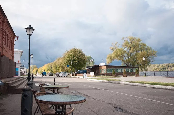 Утро в Плесе мало отличается от вечера. На улицах по-прежнему никого, а изредка проезжающие машины кажутся чем-то чужеродным. Сегодня пасмурно, и нам срочно нужно взбодриться. Идем на поиски кофе!