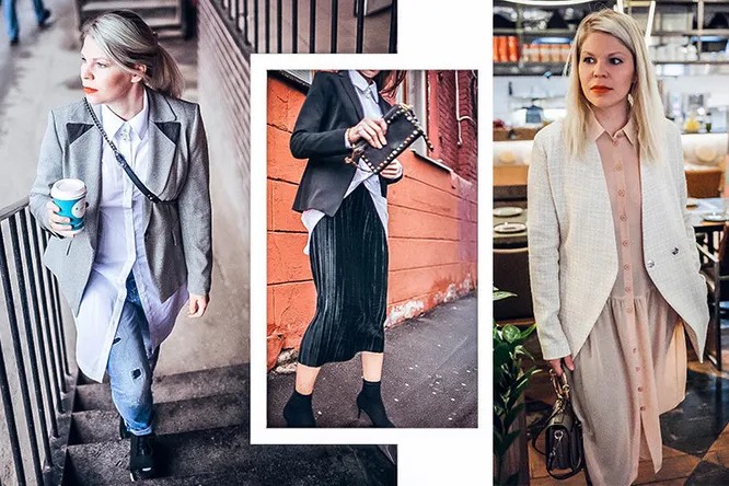 - в-третьих, оставаясь в большинстве случаев вещью из категории оверсайз, она легко скроет пару лишних кило и придаст образу женственности.