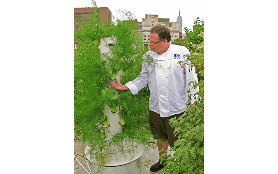 Зато можно вспомнить Дена Барбера, шеф-повара двух ресторанов — Blue Hill и Blue Hill at Stone Barns (открылся в 2004 году). Второй находится в 50 км от Нью-Йорка, и как раз и является рестораном на ферме. Меню в нем называется «фермерский праздник», и меняется каждый день в зависимости от того, что сегодня поспело в огороде. Барбер оказался человеком чрезвычайно последовательным, и за несколько лет превратил свою ферму практически в хозяйство полного замкнутого цикла: все органические отходы кухни (чье число стараются свести к минимуму) идут на компост для удобрения. Более того, поскольку органика, утрамбованная в железную бочку, в процессе разложения греется до 60-65 градусов, Барбер использует компост для эффектного аттракциона — он томит в нем овощи (разумеется, плотно запечатанные в пакеты): получается природный аналог низкотемпературной готовки. Так же Барбер использует собственный уголь для готовки, отжигая его на заднем дворе не только из дров, но даже из панцирей морепродуктов.