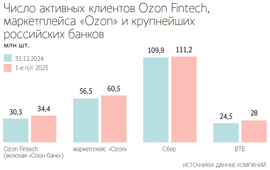 Поэтому мы решили, что хотим предоставлять клиентам весь спектр банковских услуг. И сегодня наши активные клиенты уже воспринимают нас как полноценный банк для повседневных нужд – оплатить покупки в супермаркете, ресторане, заправить авто или сходить в салон красоты. У банка очень хорошо растут клиентские средства на текущих счетах, накопительных счетах и депозитах, люди нам доверяют деньги. По итогам полугодия привлеченные средства превысили 348,6 млрд руб. – рост почти в 4 раза в годовом выражении. Фактически мы уже не «карта для покупок на Ozon», а полноценный банк, у которого есть большой фокус на удобные покупки как на маркетплейсе, так и в любом другом месте.