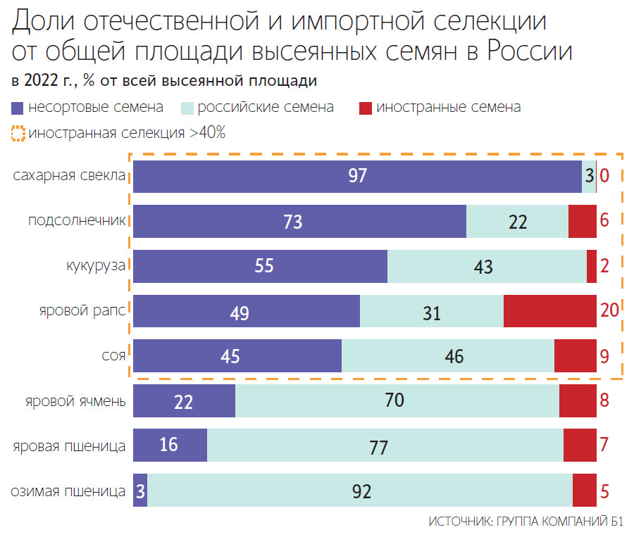 По ряду культур уже удалось добиться серьезного прогресса, замечает он. В частности, доля российских семян на внутреннем рынке сахарной свеклы выросла более чем втрое и составила 8,2%, отметил представитель Минсельхоза. Ранее семена этой культуры практически полностью импортировались, напомнил собеседник.