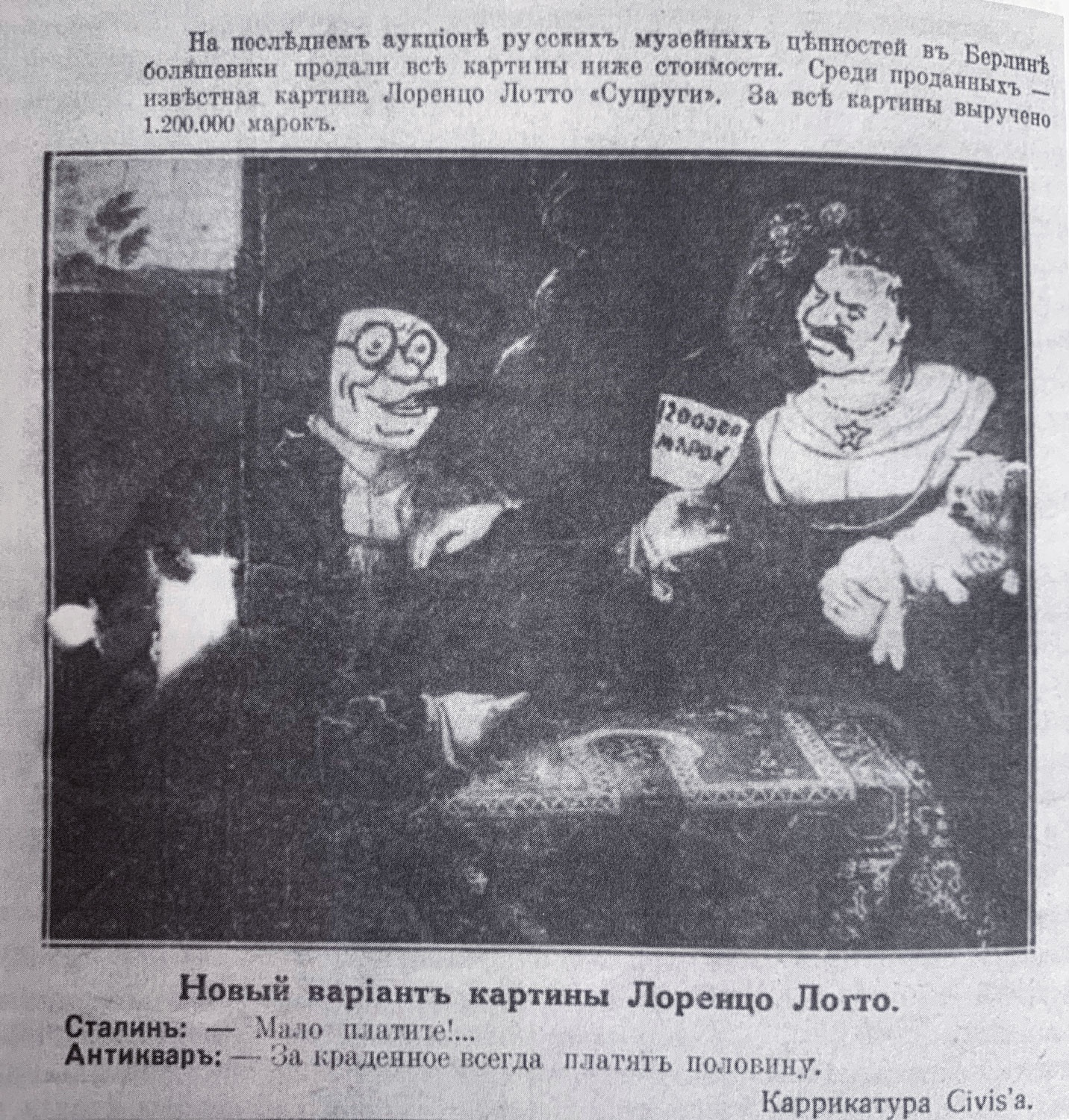 В газете “Сегодня” от июня 1929 года (№ 157) вышла карикатура на эту ситуацию, где изображены Сталин и антиквар: