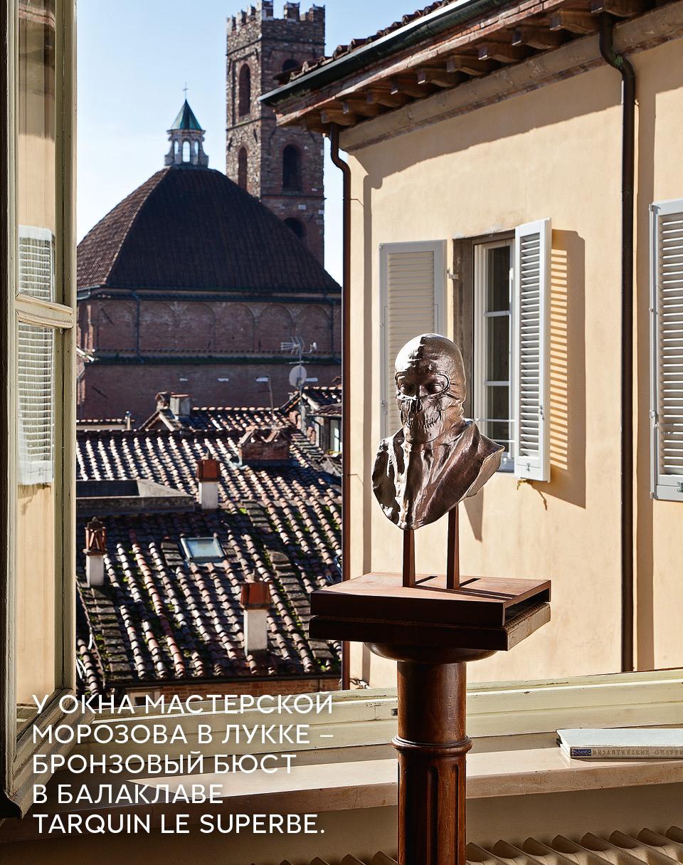 И рассказывает о том, как попал в Италию. Исходный пункт — улица Вавилова в кооперативной многоэтажке, где расположены студии Московского союза художников. Морозов арендовал там мастерскую («Своей у меня никогда не было, я не сын академика, не сын миллионера и не член Союза художников») и вкушал все прелести столичной околохудожественной жизни: тесноту, дороговизну, лифт на профилактике, сонный зимний свет, недостаток материалов и убогое литейное производство. Мрамором с бронзой Москва, прямо скажем, не богата. «Та школа литья, которую к нам привезли итальянцы и французы, давно исчезла, — пожимает плечами Алексей. — В годы «сурового стиля»