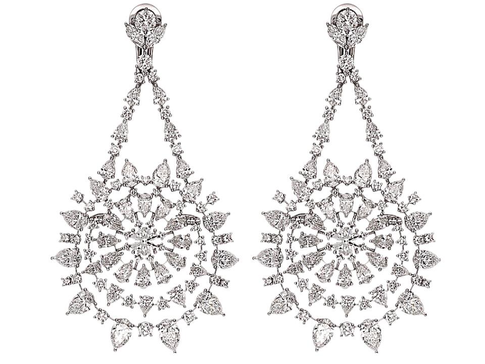 Пополнение в коллекции Chopard Green Carpet: серьги-шандельеры из белого золота и семидесяти грушевидных бриллиантов были созданы с соблюдением всех экологических и этических норм.