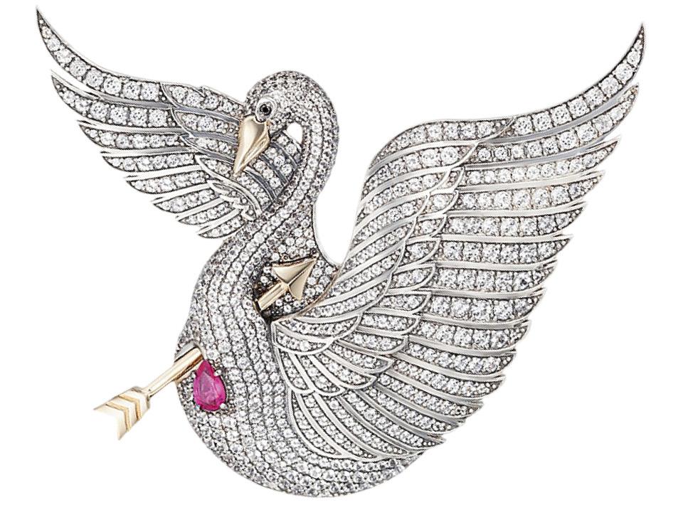 Украшенные фианитами, сапфирами и шпинелью серебряные серьги, броши и диадемы с лебедями московского ювелира Петра Аксенова — ода нежности и идеальный подарок на 8 Марта.