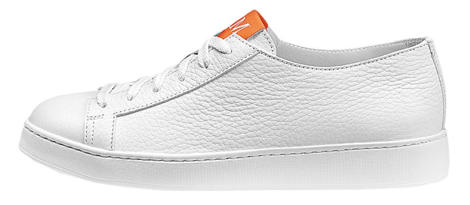 Белые и оранжевые кроссовки Clean Bi Color — совместная работа Santoni и Оливье Зама, фотографа и главреда парижского авангардного журнала Purple. Надпись Make Love на язычке — манифест на весну.