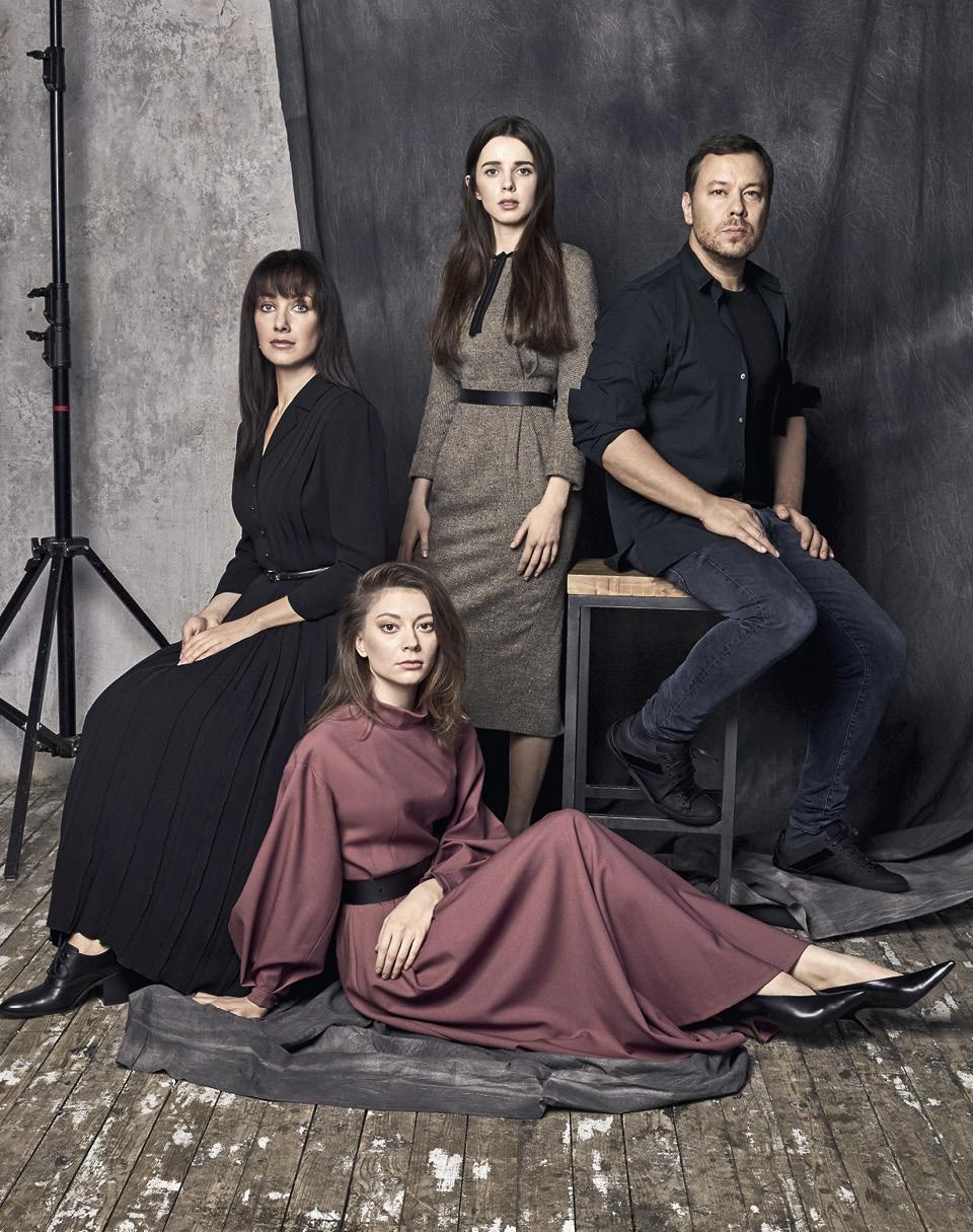 Игорь Чапурин с со­лист­кой «Новой опе­ры» Галиной Бадиков­ской и ар­тист­ка­ми хора те­ат­ра Марией Кунах и Яной Мулли­ной в пла­тьях Chapurin.