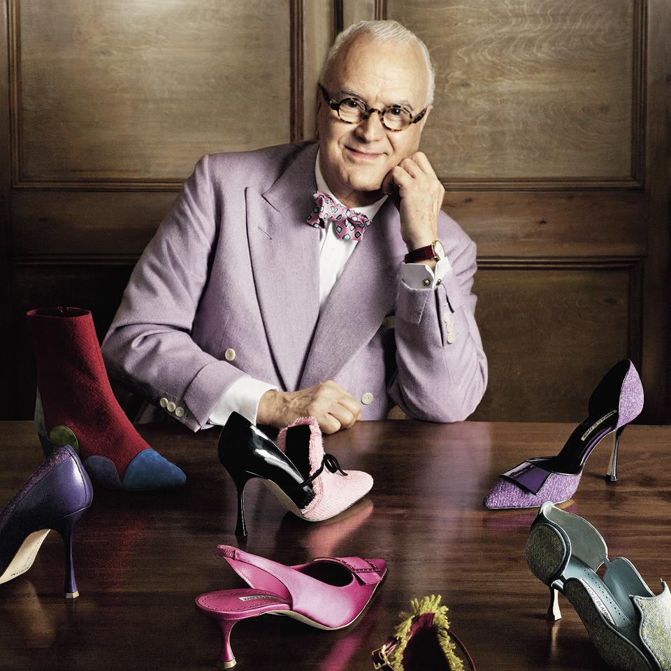 В лон­дон­ской штаб-квар­ти­ре Manolo Blahnik ат­мо­сфе­ра как в Букин­гем­ском двор­це. Шесть ас­си­стен­тов, по­хо­жих на ко­ро­лев­ских слуг, на­кры­ва­ют огром­ный де­ре­вян­ный стол для тор­же­ствен­но­го ужи­на. Толь­ко вме­сто по­су­ды — раз­но­цвет­ные туфли, бо­со­нож­ки и бо­ти­льо­ны. И вот, на­ко­нец, по­яв­ля­ет­ся ко­роль, вер­нее, ко­ман­дор Британ­ской им­пе­рии — этот ти­тул ему де­вять лет на­зад да­ро­ва­ла Елиза­ве­та II. Госпо­дин Мано­ло Бланик соб­ствен­ной пер­со­ной — гре­мя­щий, хо­хо­чу­щий, весь в си­ре­не­вом. «О моя до­ро­гая, это ты! Нам было так ве­се­ло в про­шлый раз, ко­гда ты при­ез­жа­ла сюда с Иззи (быв­ший фэшн-ре­дак­тор бри­тан­ско­го Vogue Изабел­ла Блоу, мой пер­вый босс. — Прим. ав­то­ра). Когда во­круг меня вер­ные сол­да­ты моды, это де­ла­ет меня счастливым!»