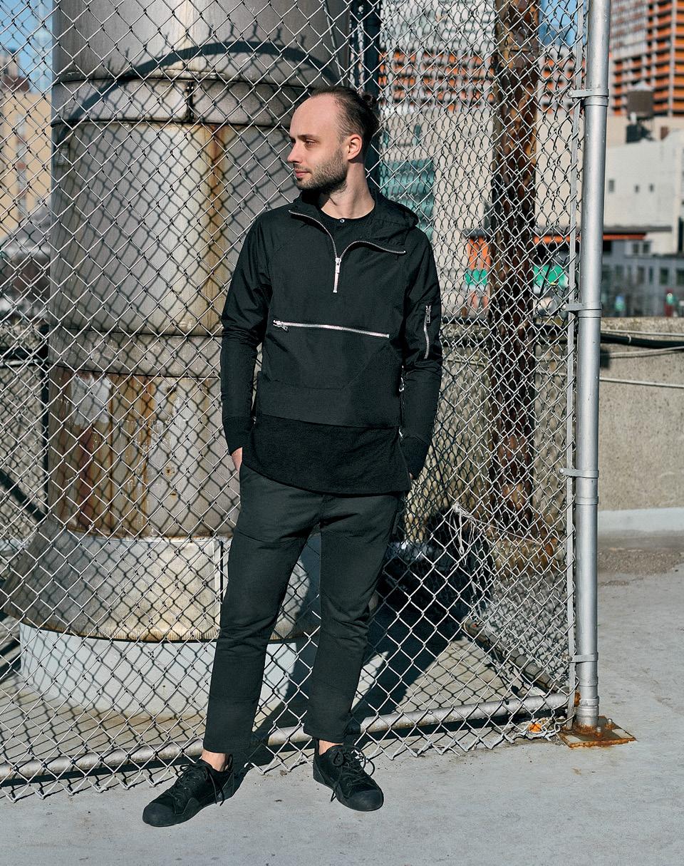 На два­дца­ти­де­вя­ти­лет­нем Андрее Блохи­не чер­ная фут­бол­ка со сло­ва­ми Blocked Content. Но на экра­не ай­фо­на я вижу лишь чер­ный куб, раз­ма­хи­ва­ю­щий ру­ка­ми. «Как Мале­вич в объ­е­ме», — улы­ба­ет­ся Андрей, ко­гда фо­кус с те­ле­фо­ном за­кон­чен. «Майки — это ти­зер, пре­ди­сло­вие к на­ше­му про­ек­ту в Вене­ции», — до­бав­ля­ет Егор.