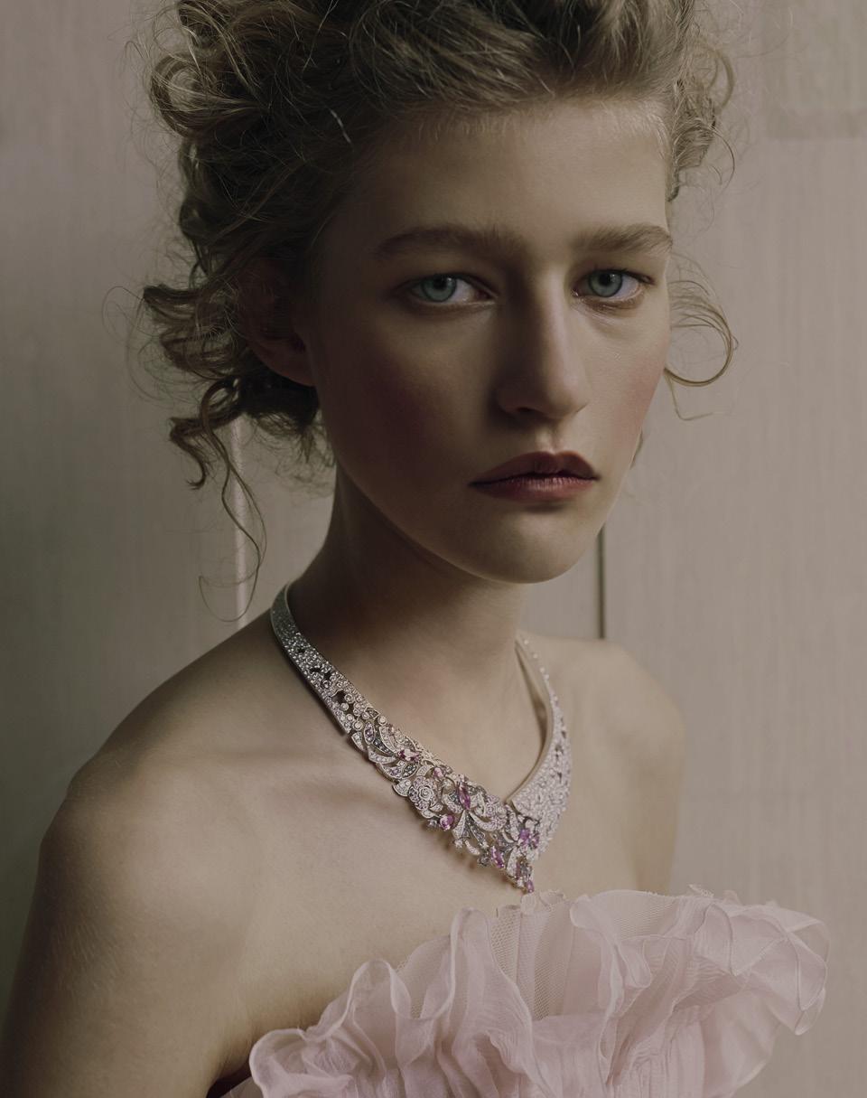 Шелковое платье, Giambattista Valli Haute Couture; колье Coco Avant из белого золота с морганитами, розовыми сапфирами и бриллиантами,