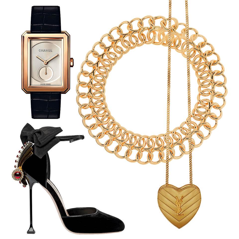 Массивные цепи и ожерелья на коктейль буду носить, как завещал Ив Сен-Лоран, — с красно-черным мини.