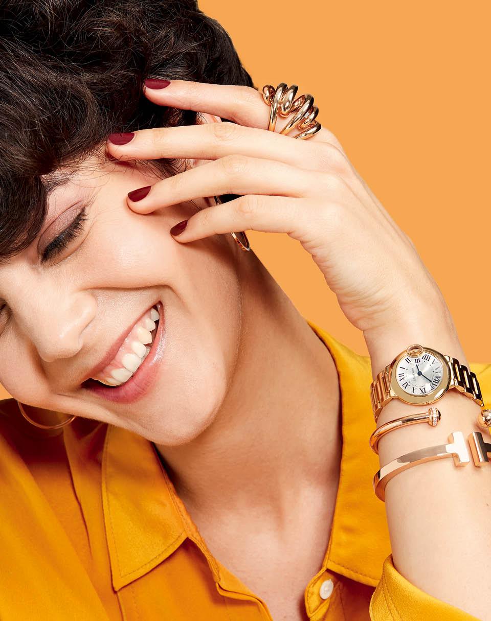 Выбирайте часы под цвет блузки: желтое золото возвращается в моду вместе с семидесятыми.