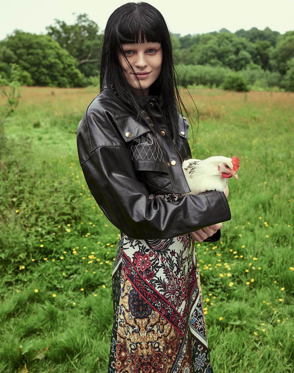 Кожаные жакет и ботинки, все Etro; платье из тюля, Valentino.