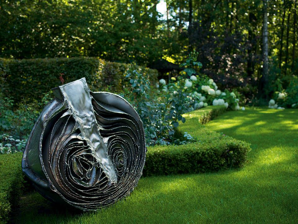 «Когда я начала покупать уличные скульптуры русских авторов, их никто, кроме меня, не брал, — рассказывает Марина Лебедева, водя меня среди металлических артишоков и деревянных абстрактных конструкций вокруг своего дома в Жуковке. — Современным искусством в интерьере уже никого не удивишь, а вот иметь скульптуры в саду многим представляется хлопотным — вы платите деньги, а они постепенно разрушаются под воздействием погоды. Недооцененная вещь!»