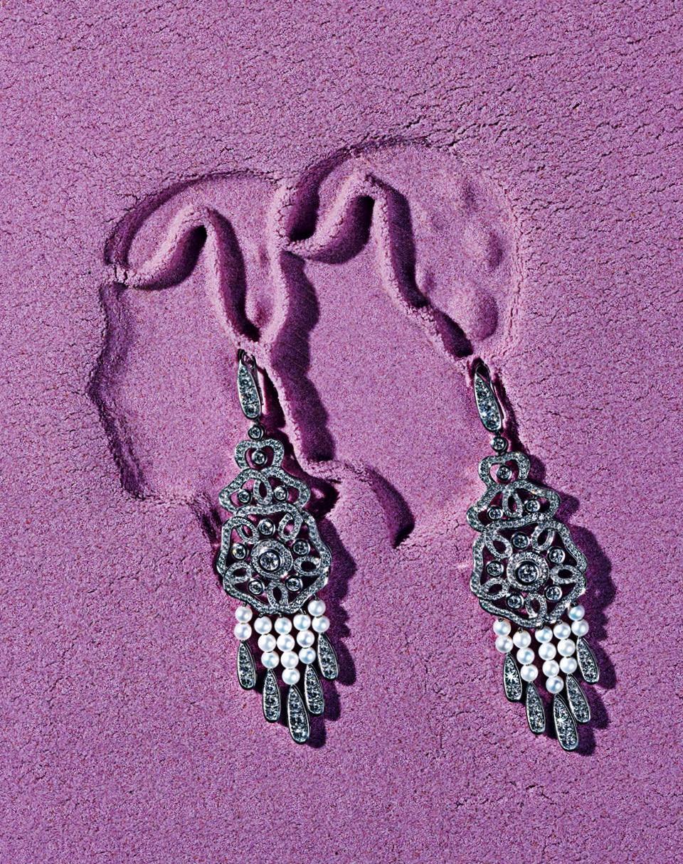 Серьги Tudor Rose из белого золота с жемчугом и бриллиантами, Garrard.