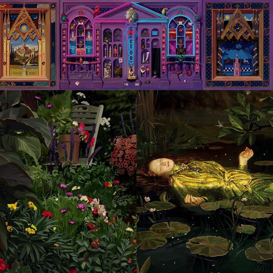 Так же как Боттичелли был живописцем Медичи, испанец Игнасио Монреаль — придворный художник Gucci. На его счету масштабные инсталляции марки в Милане и Нью-Йорке, рекламные кампании бренда и, конечно, роспись стен обновленного выставочного пространства Gucci Garden во флорентийском музее Palazzo della Mercanzia. Сквозная тема весны — исторический узор марки Flora, вдохновленный