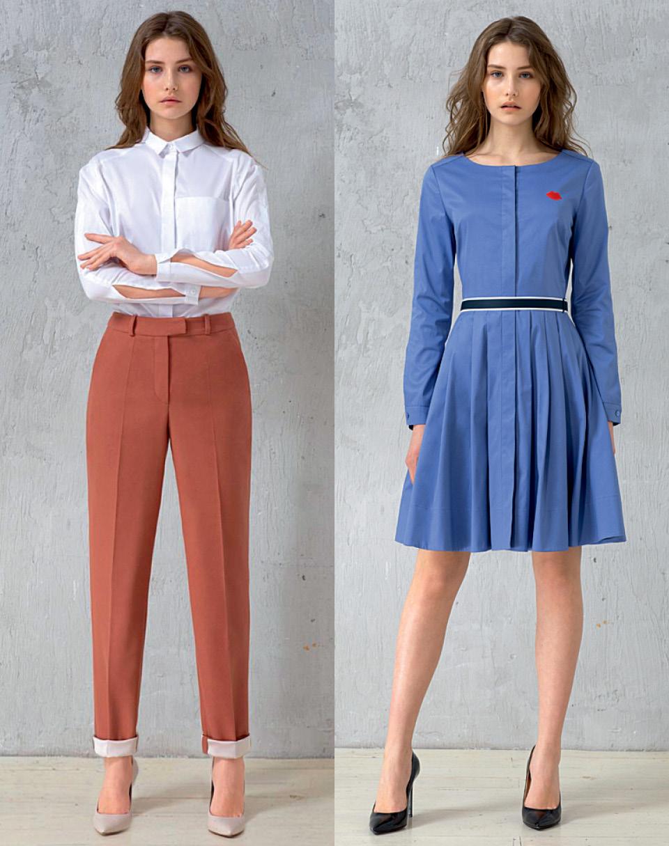 Александр Терехов запустил линию Terekhov Girl — недорогую одежду для работающих девушек: минималистичные платья из плотного хлопка, рубашки мужского кроя и брюки с высокой посадкой.