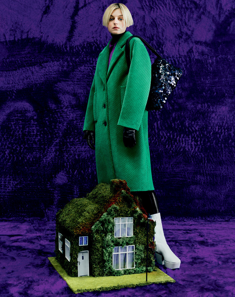 В феврале тандем представил коллекцию осень–зима 2021 — образы из нее примерили в нашей съемке новые звезды мирового экрана. На показе между нарядами словно шел непрерывный диалог: психоделические цвета перекликались с жизнерадостной чувственностью, а защитные «доспехи» — с лиловыми, украшенными принтом ботфортами на платформе. Декорации — богатая на текстуры ода тактильности и прикосновениям — напомнили и о многолетнем сотрудничестве бренда с нидерландским архитектором Ремом Колхасом.
