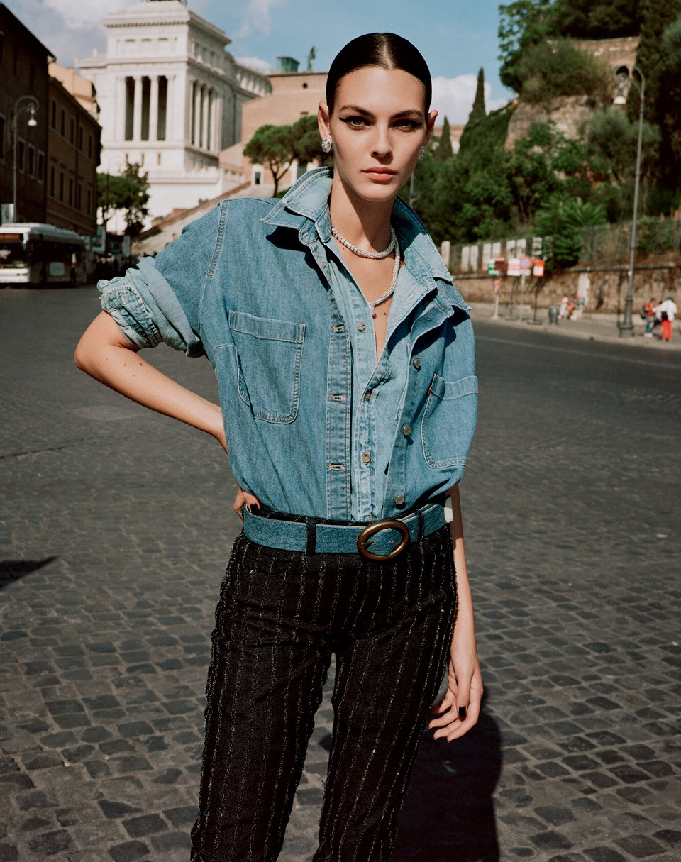 Вообще, у денима бессчетное количество минут славы в истории моды — например, джинсы Guess на первой обложке Анны Винтур для американского Vogue в ноябре 1988 года или легендарная джинсовка Lee Storm Rider на плечах Мэрилин Монро в «Неприкаянных». Именно благодаря Монро куртки из денима, как и джинсы, перекочевали из категории «мужской» одежды в «унисекс» — к слову, и само это понятие в начале 1960‑х только начало формироваться. Но несмотря на длинную, а местами драматичную и даже трагичную историю денима (о том, на что ради брюк из плотного голубого хлопка была готова советская молодежь, красноречиво рассказал сначала в книге «Поколение Джинс» Дато Турашвили, а потом и Резо Гигинеишвили в «Заложниках»), сегодня нам хочется ассоциировать его именно с нулевыми. С золотым веком it girls, которые украшали джинсы гламурными цепями и красили губы прозрачным блеском с ментолом. С эрой идеального пресса, «раскладушек» Motorola RAZR V3 и автозагара. В общем, со временем беззаботным, ярким и забавным.