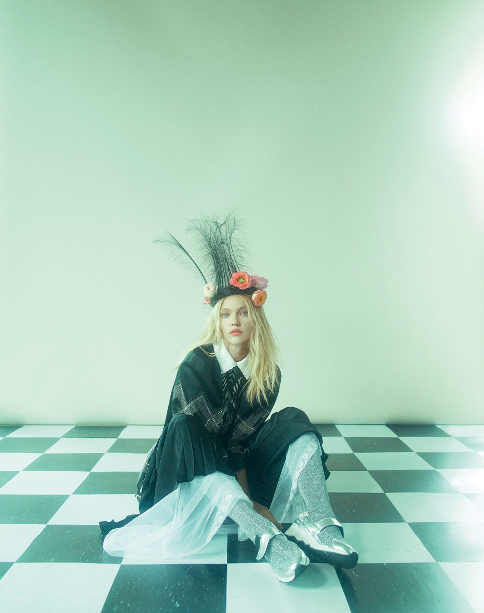 Это потрясающе, что Vogue мне предложил съемку в ботаническом саду, потому что природа — это то, что сейчас меня больше всего вдохновляет, — воодушевленно рассказывает Саша Пивоварова. — Осень прекрасна, что в Москве, что в Нью-Йорке. Сочетание цветов, утренний свет, проникающий сквозь листья, тыквы… Хочется поплыть куда-нибудь на лодке и с воды наблюдать пятна цвета на берегу».