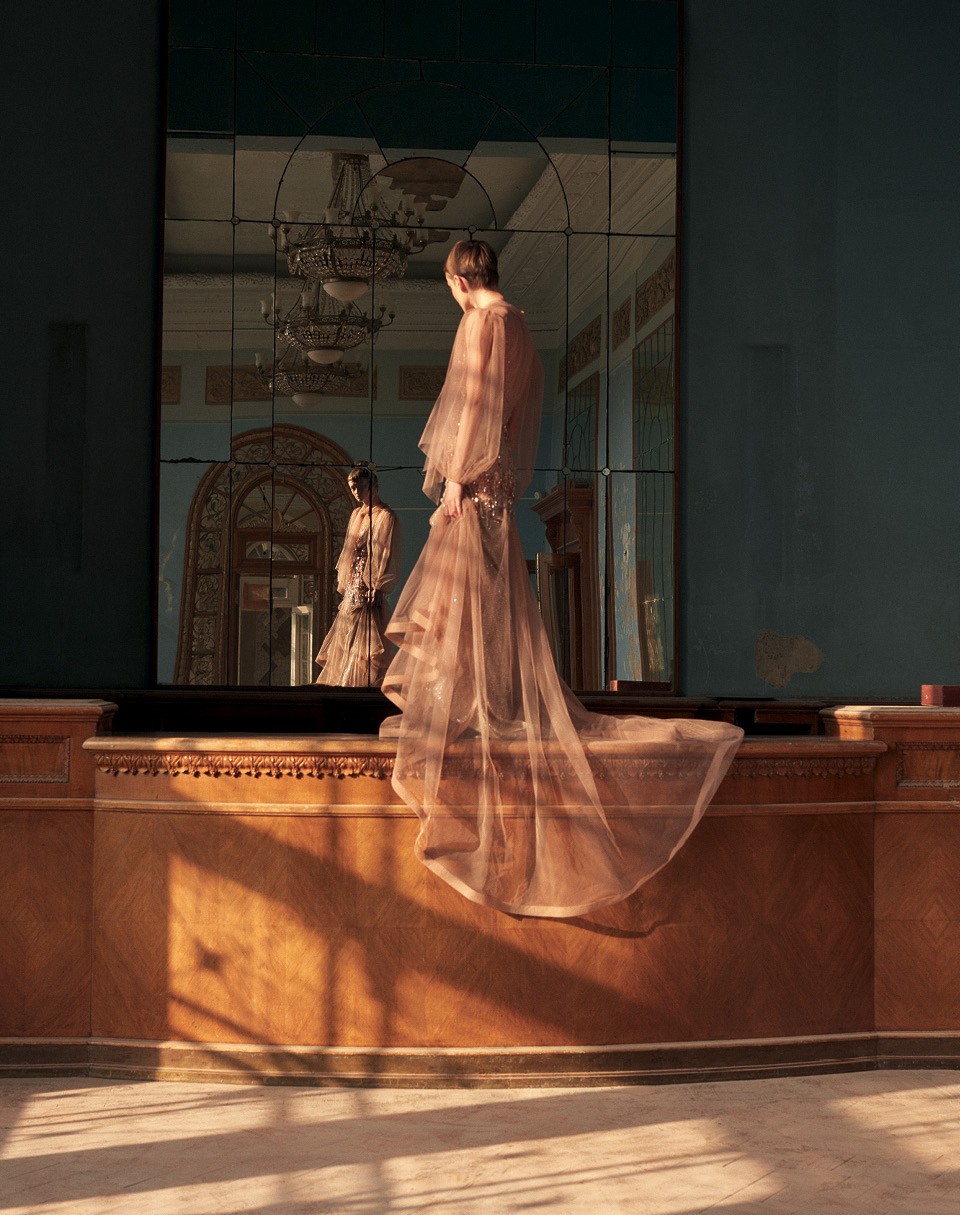 Мы действительно встречались с Валентином, ровно десять лет назад, по случаю предыдущего юбилея. Тогда специально для Vogue Дом моды открыл свои архивы, и мы с коллегой провели несколько дней, изучая шедевры Haute Couture. Их были десятки, нет, сотни. Расшитый тюль, объемная парча, хрупкие перья, сложнейшие сюжеты, перенесенные на шелк. Чистая мýка для редактора — пытаться выделить одну фантазию дизайнера на фоне остальных.