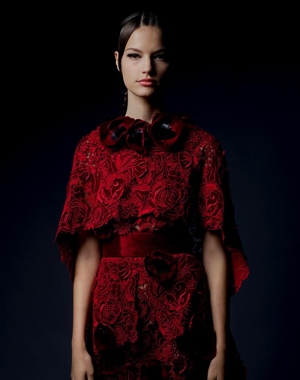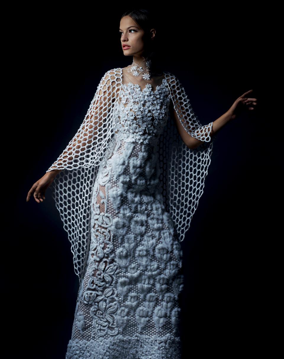 Уникальные технологии и золотые руки, многочасовой кропотливый труд и ювелирная работа — все это брошено на алтарь самой идеи вечной ценности натурального меха. Анемоны, маки, ирисы и пионы из норки, соболя, шиншиллы, лисы, рыси, каракуля, окрашенных в сто сорок пять различных цветов, выполнены в сложнейших техниках вышивки, инкрустации, трехмерной аппликации, ручной росписи. Мех вплетается в кружево, сливается с бархатом, кожей, органзой, парчой и тюлем.