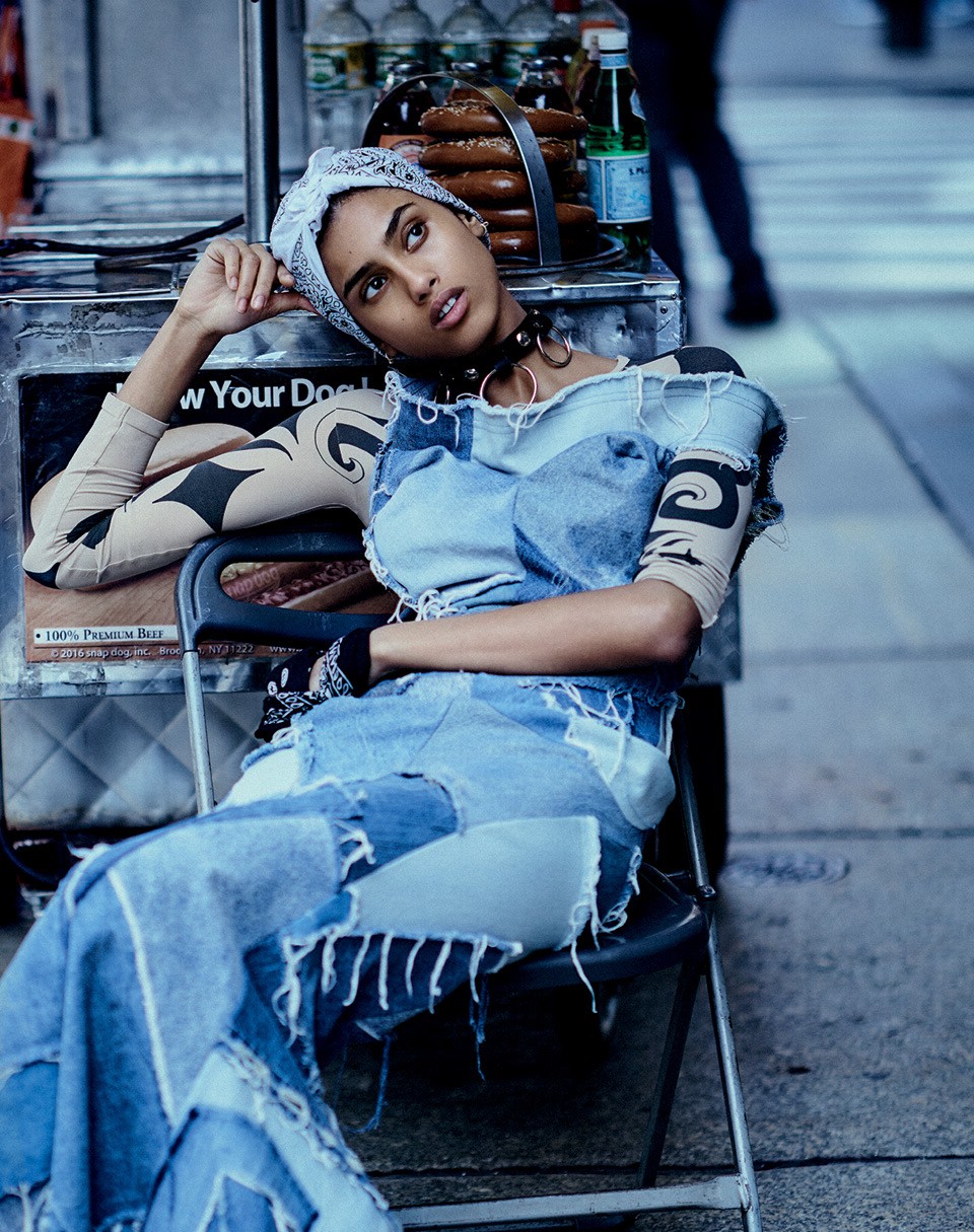 Великий стритстайл-фотограф Билл Каннингем говорил: «Мода — броня, которая помогает нам в столкновении с повседневностью». И летом мы оказываемся почти беззащитны. Плащи и куртки прячутся в шкафах, а нам даже спрятаться негде: все такое короткое, прозрачное, открытое. В отчаянной ситуации спасает смелость: смелость носить юбки пышные, как кремлевская елка, с футболкой с рейв-вечеринки, смелость ходить в офис в гидрокостюме, смелость демонстрировать свою сексуальность без стеснения — как это делает девушка с нашей обложки, нидерландская модель марокканско-египетского происхождения Имаан Хаммам.