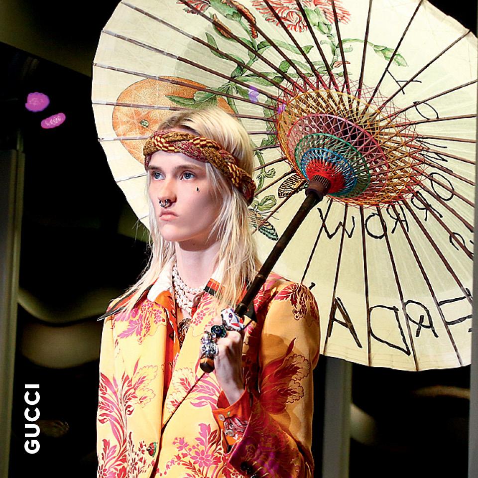 Результат совместного творчества — вещи с философскими афоризмами, которые вошли в осенне-зимнюю коллекцию марки. Например, на белой футболке, предмете желания всех модниц, поверх красно-зеленого логотипа Gucci начертан слоган Common Sense Is Not That Common, «Здравый смысл не так уж здрав». Вот серебряные куртки с надписью Nothing Matters (That) Much, «Все не (так уж) важно». Или зонтик Tomorrow Is Now Yesterday, «Завтра — это теперь вчера».
