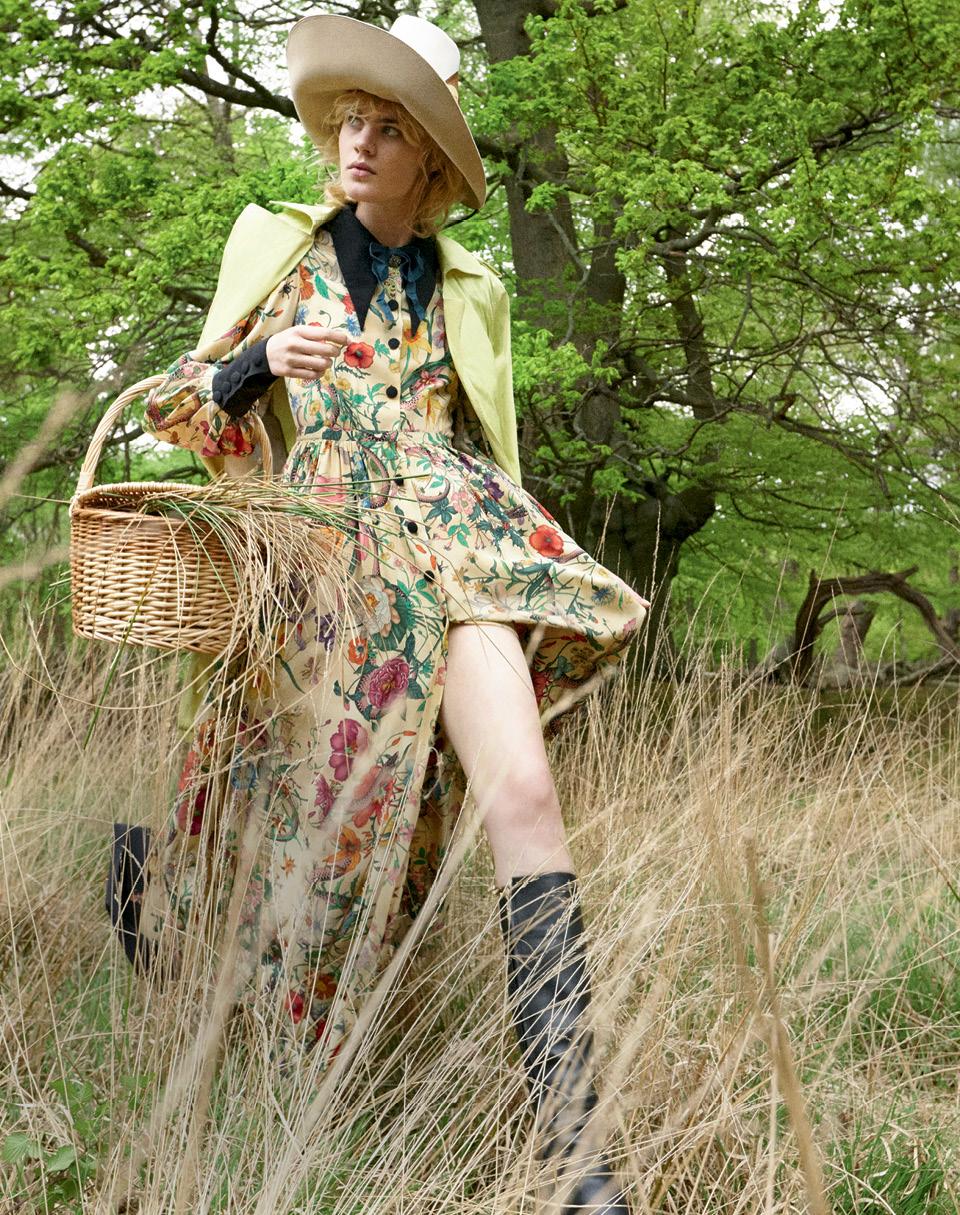 Очаровательные садовницы наступающего осеннего сезона — это дочери и внучки тех самых «детей цветов» из модных 1970‑х. Они носят такие же приталенные платья в цветах, широкополые шляпы и высокие сапоги.