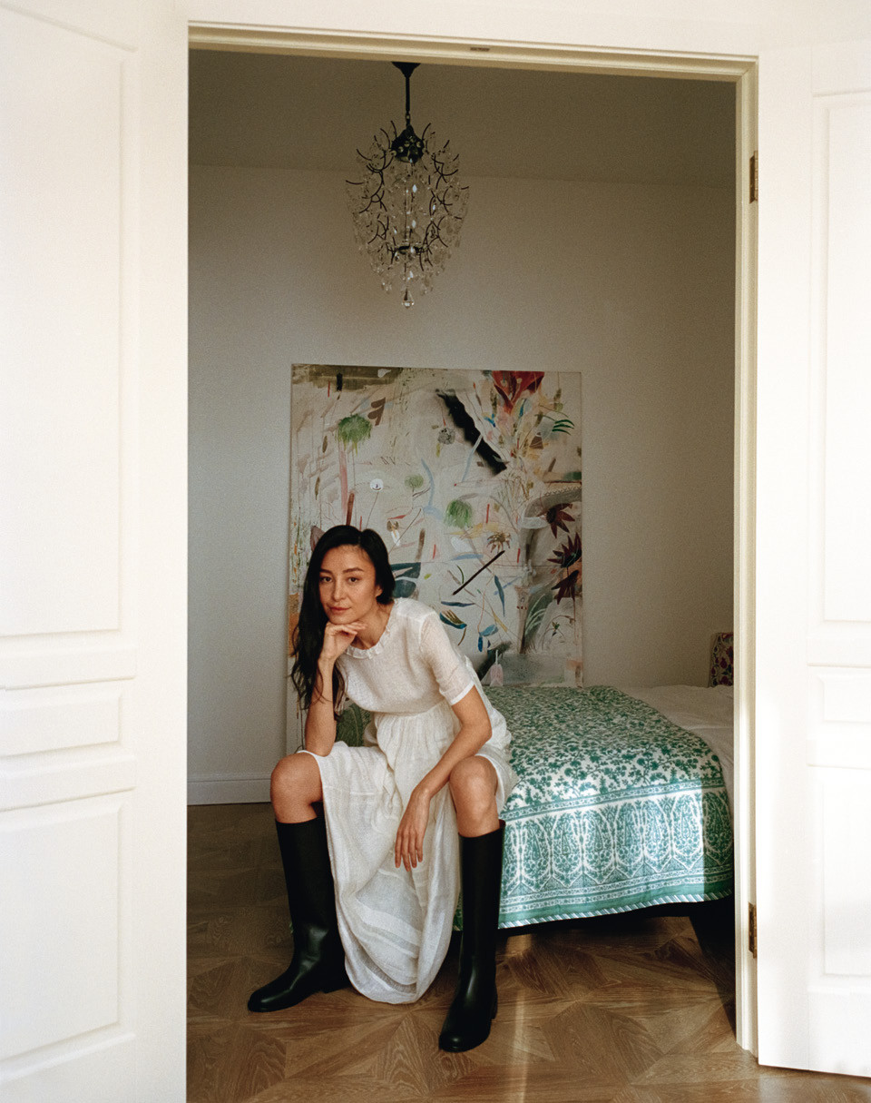 Три года назад Азиза, которая на тот момент обитала в Лос-Анджелесе и занималась «платформой для творцов» Free from Winds, придумала коллаборацию с грузинской маркой idée fixe: балетки из бархата изумрудного цвета. Обувь засветилась в инстаграме (соцсеть признана в РФ экстремистской и запрещена) Леандры Медин Коэн — и партия разлетелась как горячие пирожки. Правда, сиквела не последовало: Азим устроилась на «более официальную» работу — и стало не до коллабораций. Но идея «правильных» балеток продолжила жить у нее в голове. «Эта обувь идеальна под любой образ, а еще — под любую девушку. Неважно, одета ли она в рок-стиле или как хиппи». И, как и все мысли, которым