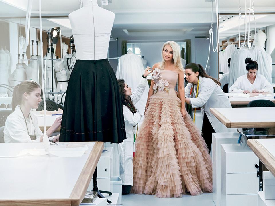 Обычно на создание платья до пола уходит три месяца. Требуются две примерки. На самом деле можно обойтись и одной, потому что у постоянных клиенток в ателье есть свои манекены. Подвенечное платье Dior шили по моему, и на первой же примерке оно прекрасно село. Но французские Дома чопорные, строго следуют регламенту. Там, например, невозможно себе представить, чтобы кто-то — клиент или дизайнер — опоздал. И они считают, что вторая примерка категорически необходима. Надо — значит надо.