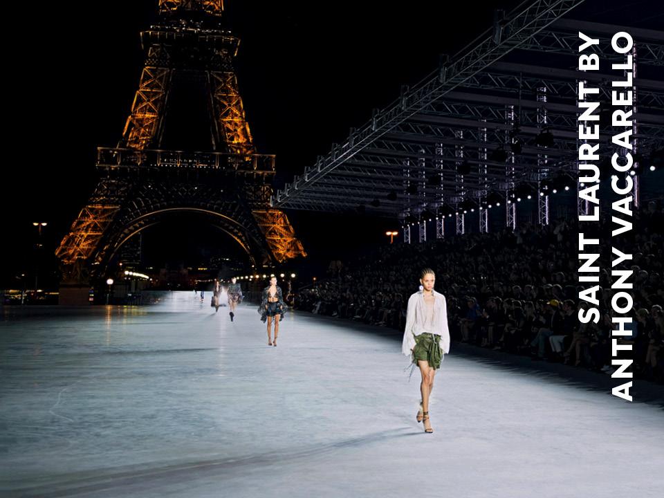 Модные дома напоминают о своих истоках: в честь Ива Сен‑Лорана и Пьера Берже показ Saint Laurent устроили у подножия Эйфелевой башни. А на подиум Versace вышли супермодели 1980‑х: Клаудия Шиффер, Наоми Кэмпбелл, Синди Кроуфорд, Карла Бруни и Хелена Кристенсен.