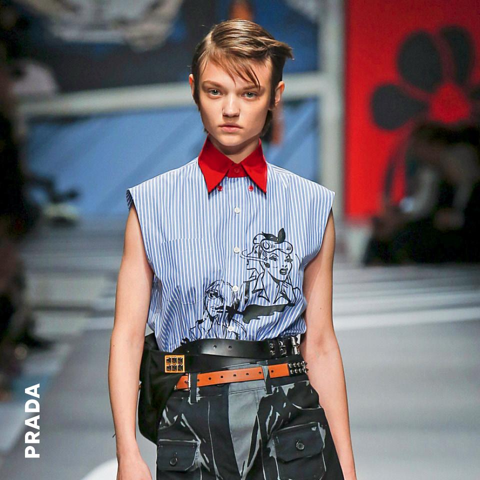 Гвидо Палау взял за образец мальчишеские стрижки Мии Фэрроу и Кристи Терлингтон и подстриг под них моделей на шоу Prada согласно теме коллекции — 1960‑е и конец 1980‑х.