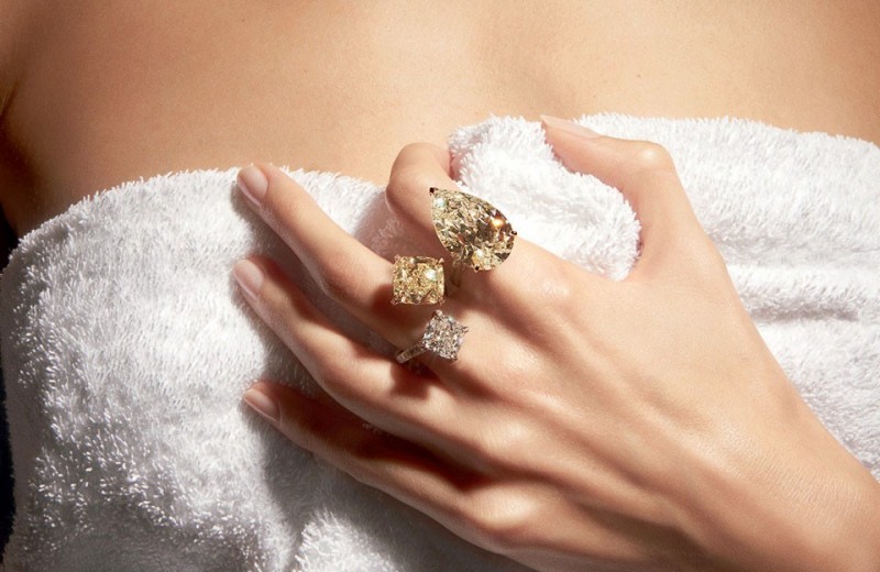 Желтые бриллианты в этом сезоне везде — от миниатюрных подвесок до колье. В отличие от белых камней, желтые сияют теплым светом. И всегда готовы вас согреть