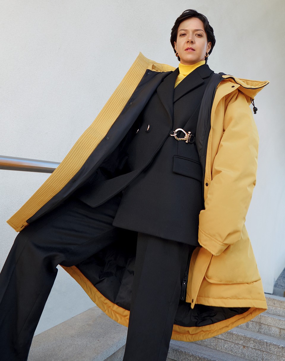 На создание российского монобренда зимней одежды Чилингарову вдохновил папа Артур — великий исследователь Арктики, с которым Ксения однажды отправилась в экспедицию. «Хотела понять, что он такого нашел на Севере: там же ни моря нормального, ни кафе», — смеется она. На полярной станции ей выдали именную куртку, на Большой земле экипировкой восхитился друг, а теперь и партнер Анатолий Цоир. Дальше была поездка на фабрику, где с советских времен шьют куртки для полярников: «Там работают люди, которые верят, что если ты что-то сделал не по ГОСТу, то человек может погибнуть». В Arctic Explorer проверенные временем технологии совмещают с новейшими, подкладок делают две, чтобы не лез пух, и мечтают научиться использовать корейскую ткань из переработанного пластика. «Если за брендом стоит крутая идея — все сложится, потому что именно идеи двигают прогресс». Идея Ксении проста и эффективна: «Бороться и искать, найти и не сдаваться».