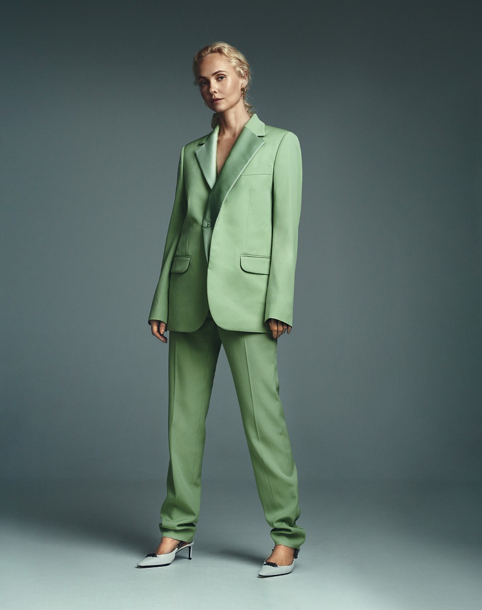 Шерстяные жакет и брюки, все Y/Project; кожаные туфли с металлическими пряжками, Tom Ford; золотые серьги, By Stolie.