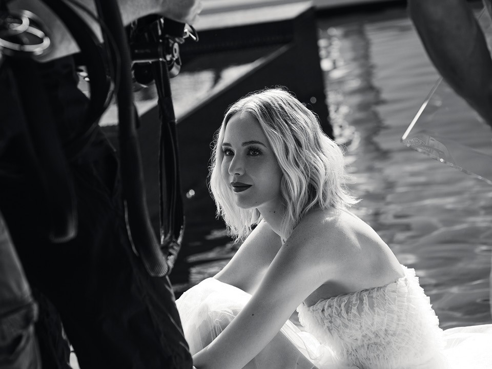 Запуск кампании с Лоуренс запланирован на август, но нас позвали в один из голливудских особняков посмотреть этот короткий метр заранее: в серебристо-фиалковом платье Dior Дженнифер ныряет прямо в бассейн. Кстати, режиссировал ролик Фрэнсис Лоуренс, снявший три части «Голодных игр», сделавших Лоуренс суперзвездой.