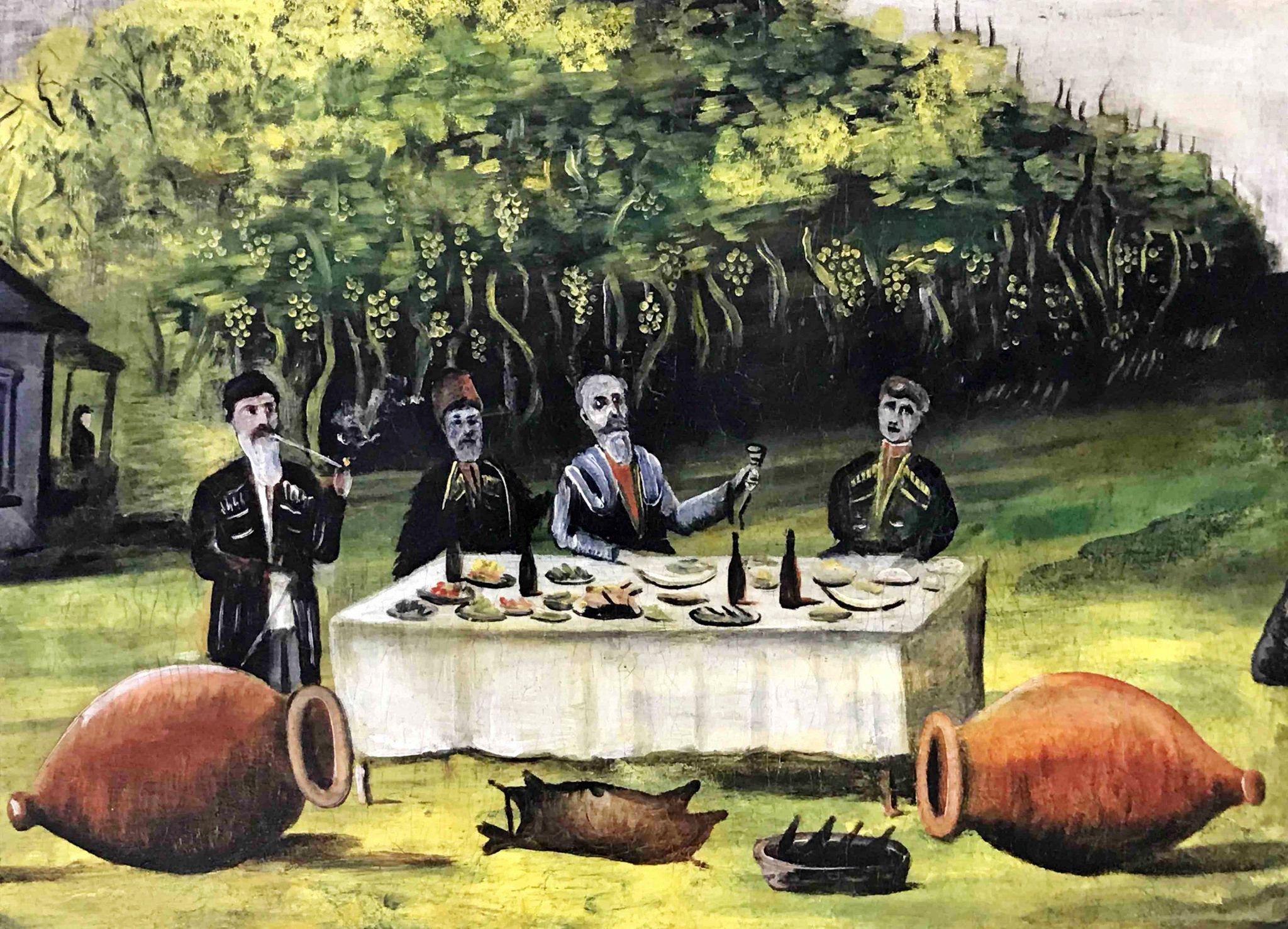 Для чакапули куски молодой баранины томят в вине с травами и ранними плодами алычи. Готовить его полагается на огне в чугунном котелке кваби. Тогда в результате получается блюдо для пира, достойного кисти знаменитого Нико Пиросмани.