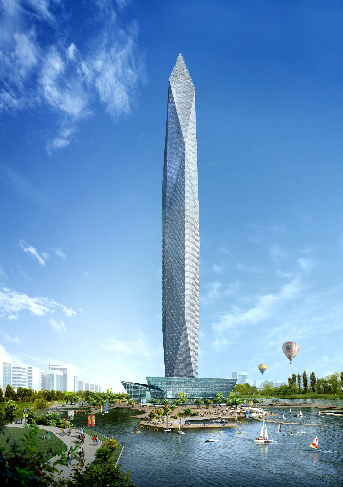 Это 448-метровая башня с 4D-кинотеатром, аквапарком, ресторанами, ландшафтными садами по задумке проектировщиков сможет начисто скрываться с глаз. С видеокамер, расположенных по стенам во всех направлениях, в режиме реального времени будет передаваться картинка на светодиодные экраны, покрывающие противоположную сторону башни. Здание будет как бы прозрачным, видимым насквозь. Строительство началось в 2019 году.